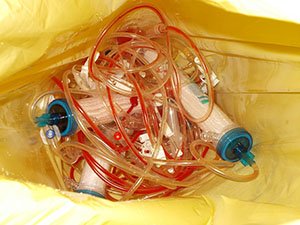 传染性废物:纱布/绷带、血液/输血输液管、操作手套等